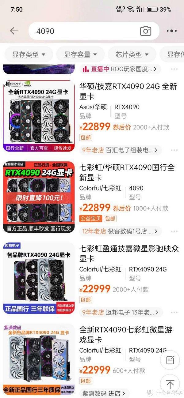 这一禁令在中国市场引发了广泛关注。英伟达旗舰店已下架该型号显卡,华硕、七彩虹等合作商也同样纷纷下架相关产品,目前各大电商平台已显示无货状态。第三方平台方面, RTX 4090迎来全面涨价或显示无货,目前淘宝平台价格已在1.7万- 3万元之间。