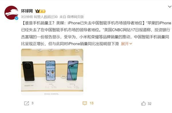 10 月 18 日,手机中国了解到,美国 CNBC 网站报道称,投资银行杰富瑞的一份报告显示,受华为、小米和荣耀等品牌销量的推动,中国智能手机销量同比呈现正增长,但与此同时 iPhone 销量同比出现明显下滑,这令华为取代苹果坐上最近一段的中国手机市场份额头把交椅。