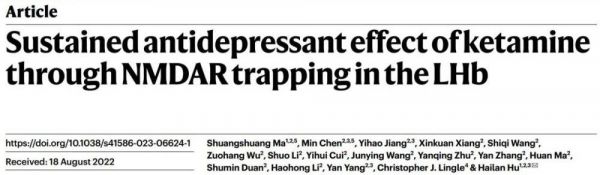 [1] Sustained antidepressant effect of ketamine through NMDAR trapping in the LHb. Nature (2023) Doi: https://doi.org/10.1038/s41586-023-06624-1