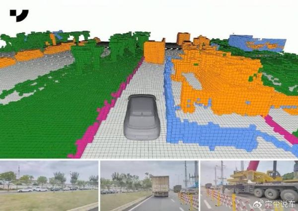 在极越发布的OCC占用网络技术演示视频中,OCC技术在汽车机器人的视觉世界里,实时重建还原3D场景。极越01的感知系统用体素清晰展示了栏杆、绿植、路障等标准障碍物,同时还精准识别出了施工中的工程车、树木中的路灯等异形障碍物,能适应更复杂场景和不同环境。