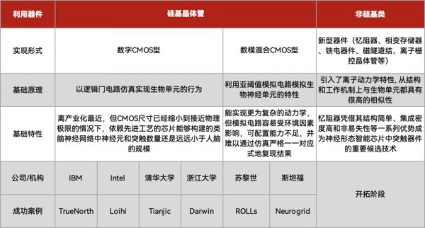 类脑芯片主要类型和研发进度,制表丨电子工程世界