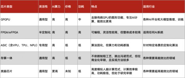 适用于AI计算芯片主要类型,制表丨电子工程世界