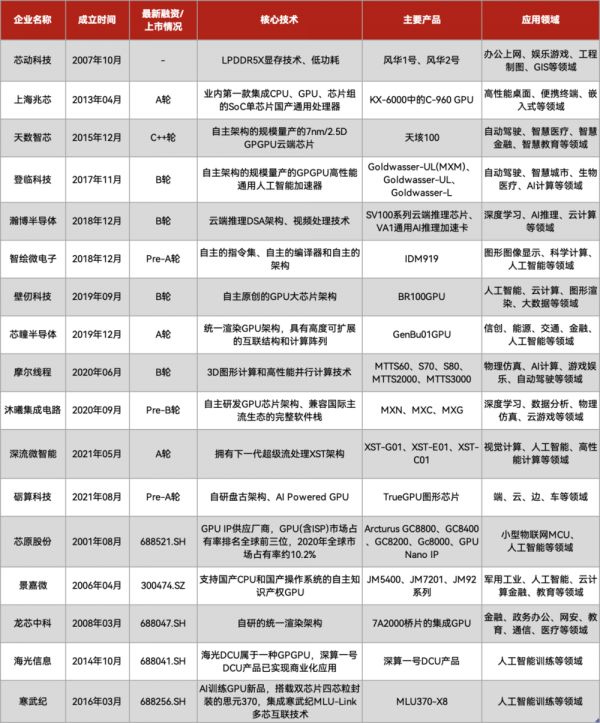 国产GPU厂商不完全统计,制表丨电子工程世界