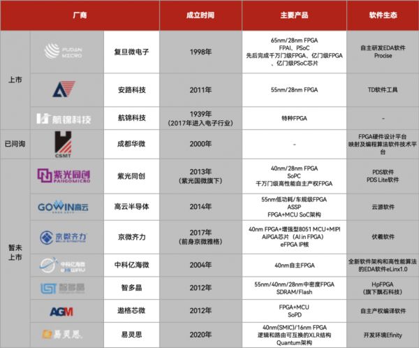 国内FPGA企业不完全统计,制表丨电子工程世界
