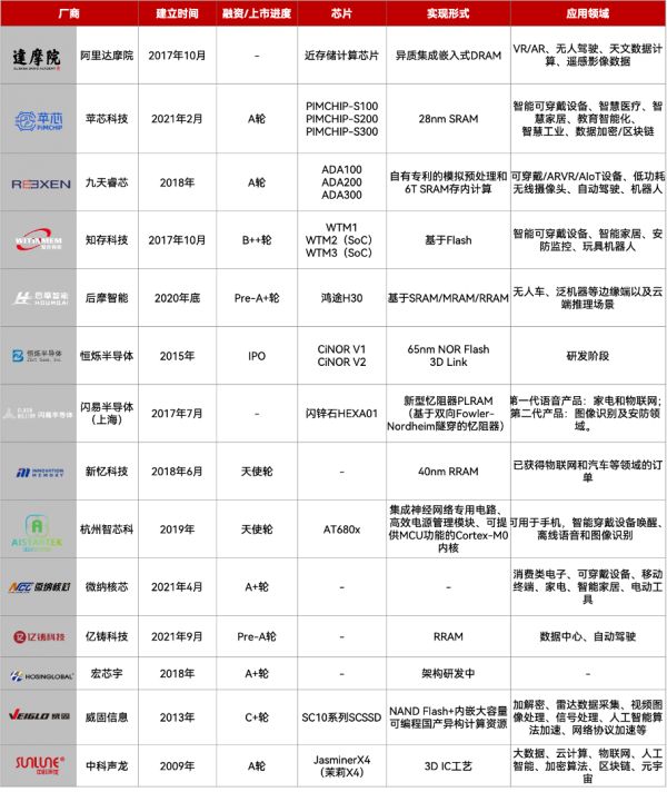 国内存算一体芯片企业不完全统计,制表丨电子工程世界