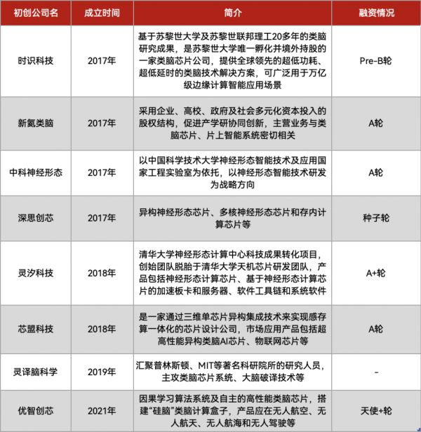 国内类脑芯片企业不完全统计,制表丨电子工程世界