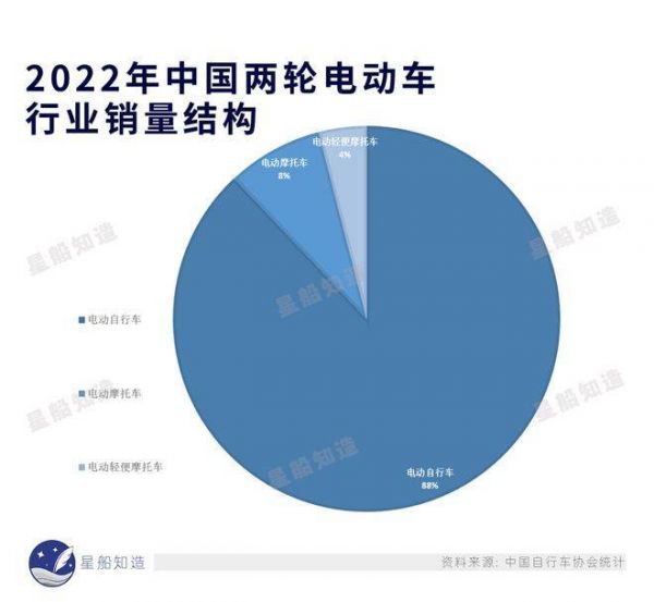 从下图可看到,电动自行车是我国两轮电动车最大的细分市场2022年我国电动两轮车销量6070.00万辆,同比增长22%。其中电动自行车销量约5000万辆,约占两轮电动车市场的88%。