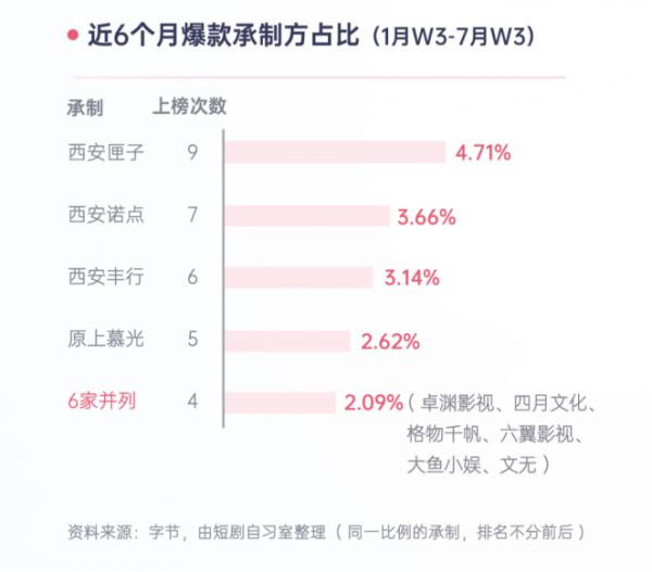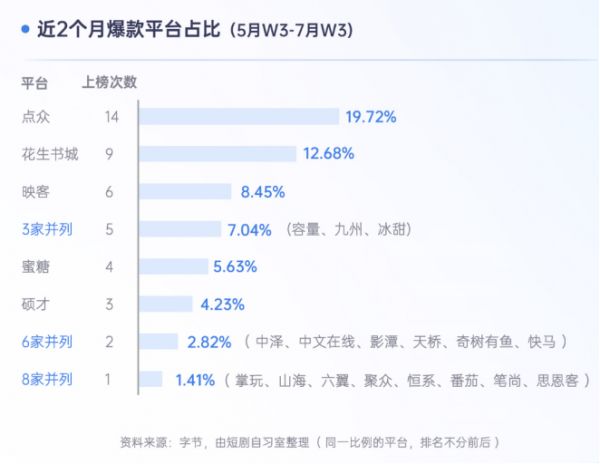 小程序剧制作公司的规模大多不大,因此产能也有限,在选择平台时只能优中择优,事实证明也是头部平台爆款更多。