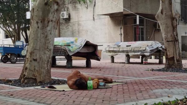 驿站下班以后,这部分无处可去的日结工人会选择在驿站附近的小树林,以及离这里不远的麻岭公园里睡觉。按照15块钱一晚的住宿标准,每个月450的住宿费只需要打两至三天工就能赚出来,然而事实并非如此。这些流落在外的人大部分兜里都掏不出20块钱,他们因为身体条件、背负债务等多种原因来到麻岭,一袋子馒头吃一天,露天睡觉也睡不好。等第二天想去做日结,日结的活他们基本上还做不好。