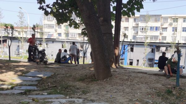 农业银行的转角是一片小树林,这些工人与日结工人一样整天待在外面等活,但他们基本上不去做日结,而是等着大货车来此处拉散工,去做一些工地小工、灌水泥袋子、清扫仓库的活,日结工资在300-350元之间。这给了一些有本事的人工作机会。