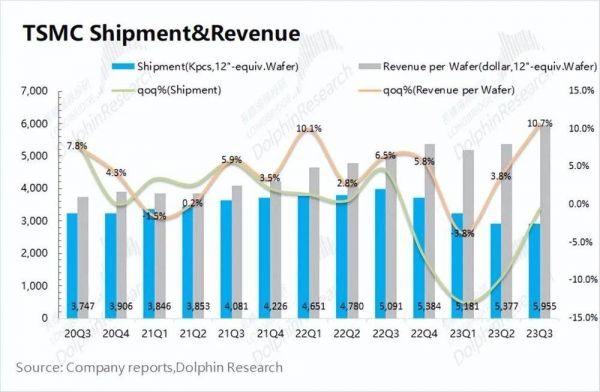 海豚君从量和价的维度,来观察台积电三季度收入增长的主要推动力: