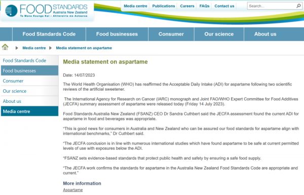 [6]Media statement on aspartame (foodstandards.gov.au)