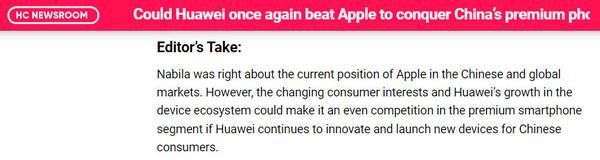 外媒表示,华为要从苹果手中夺回份额的确面临挑战。不过,如果华为继续创新,为中国消费者推出新设备,消费者兴趣的转变和华为在生态系统中的增长,可能会使华为在高端智能手机领域有实力与苹果展开公平竞争。