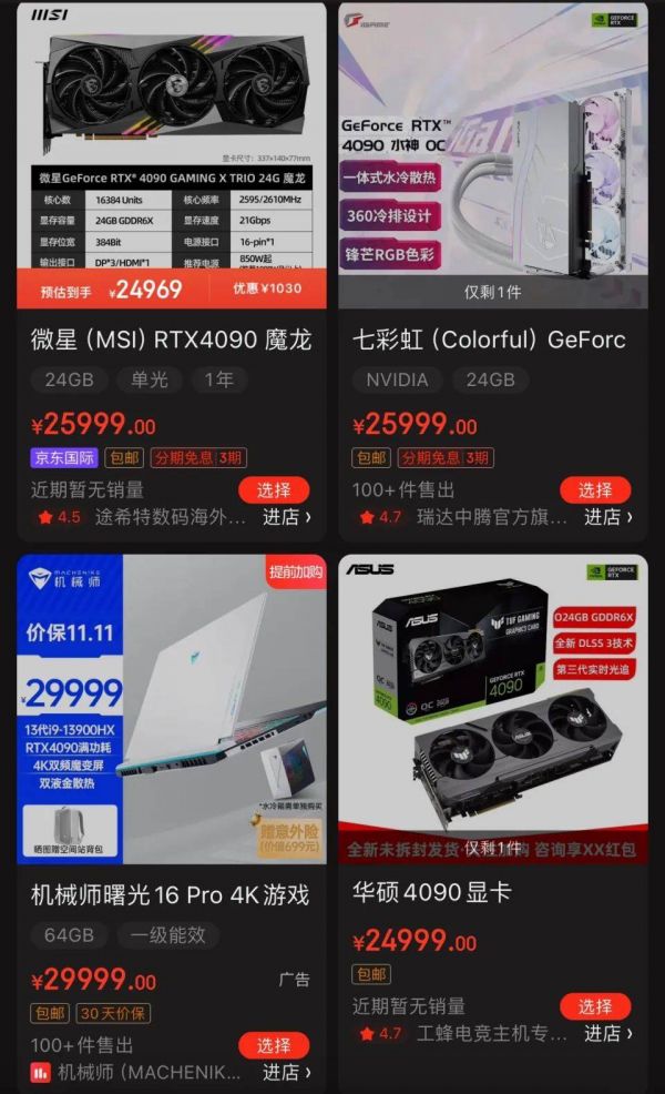 此消息一出,立刻引发RTX 4090系列游戏显卡价格暴涨。