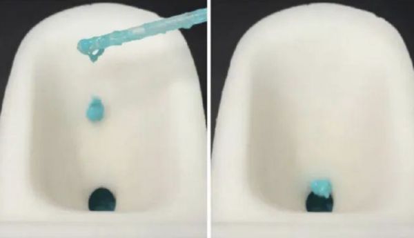 科学家先后在使用这种涂层制造的马桶内壁上测试了水、人造混合粪便、真实粪便,发现 LEES 涂层能够将粪便这样的粘弹性流体的附着力降低约 90%,基本做到了“不粘连”。