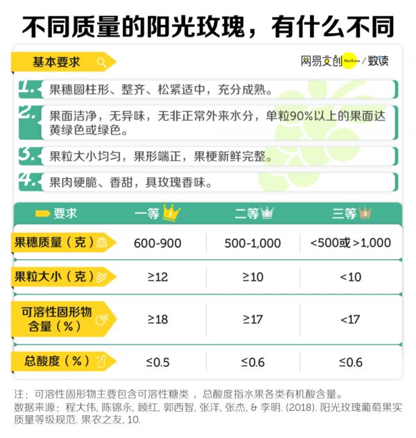 不过,研究所的标准并没有推广到全国。目前,国内并没有统一的阳光玫瑰质量标准,不同果商会根据市场需求以及供应量来调整标准,这也导致市面上的阳光玫瑰良莠不齐,仅凭外观,很难挑出好吃的。