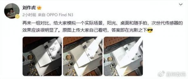 最后是影像部分,虽然目前为止官方仅仅只公布了「全主摄时代又一力作」这一信息点,但通过刘作虎发布的内容能够知晓,此次OPPO Find N3搭载了次世代传感器,可在复杂光影场景下,带来远超iPhone 15 Pro与iPhone 15 Pro Max的成像表现,由此也是不禁令人好奇,OPPO Find N3这是要革新行业折叠影像体验的节奏?