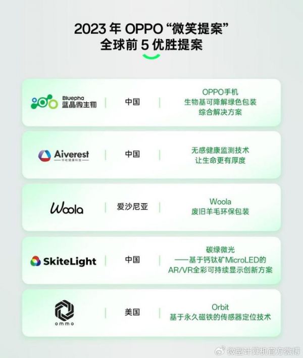 今年OPPO“微笑提案”以“致善创新”为主题,下设“科技为人”和“绿色未来”两大课题。历经全球科创项目征集和筛选、三大区域路演赛以及加速营交流活动后,“微笑提案”最终从来自66个国家和地区的687份创新提案中评选出全球前5优胜提案,以创新科技赋能社会,号召更多人共同关注社会议题。