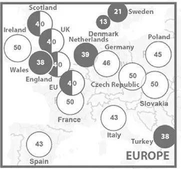以欧洲为例,不同国家对罕见病的定义也有所不同,往往需要根据人口、药物研发等等因素来考虑(单位为每100000人) | 图源:Chung C C Y, et al. 2022.