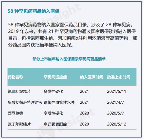 罕见病药物纳入医保现状 | 图源:罕见病综合报告