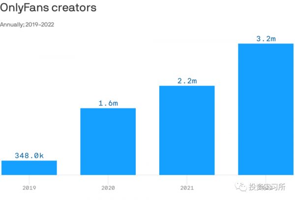 仅在创作者经济这个领域,我之前介绍过的成人内容创作者平台Onlyfans,其2022年的收入达到了11亿美金,利润5.25亿美金,老板一个人分的钱就超过了3亿美金,无论是创作者还是用户数都呈现大幅度增长,现在的创作者达到了320万,比疫情前增长了9.2倍。