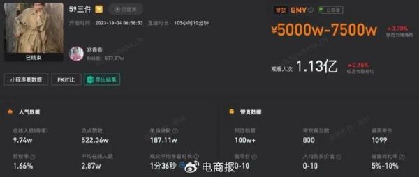郑香香一场带货5000万