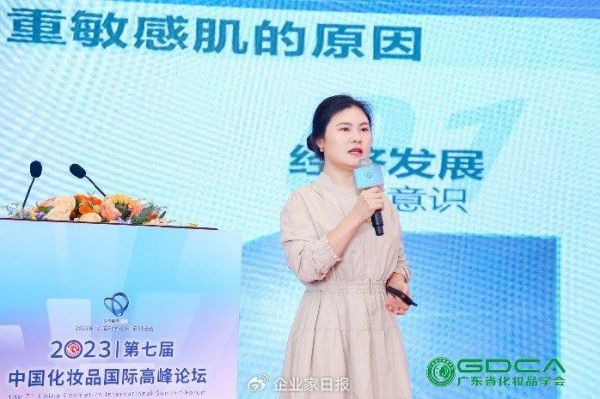在精准护肤与AI技术分论坛上,无限极美妆研发经理太美灵受邀上台发表“守护敏肌、告别肌肤‘情绪’”主题演讲。太美灵详细介绍了敏感肌的诱发机理以及无限极的敏感肌专研配方——心维雅致简系列,该系列产品经人体临床功效测试证实具有舒缓、修护功效,温和无刺激。通过与三甲皮肤科医院的共同临床研究,为过敏性皮炎患者提供了更有效的治疗方法。最后,太美灵还分享了无限极独特的“生活四合理,养护敏感肌”理念,倡导大家饮食有节、起居有常、运动有度、情志有衡,告别“肌肤小情绪”。主题演讲赢得在场观众的高度赞赏。