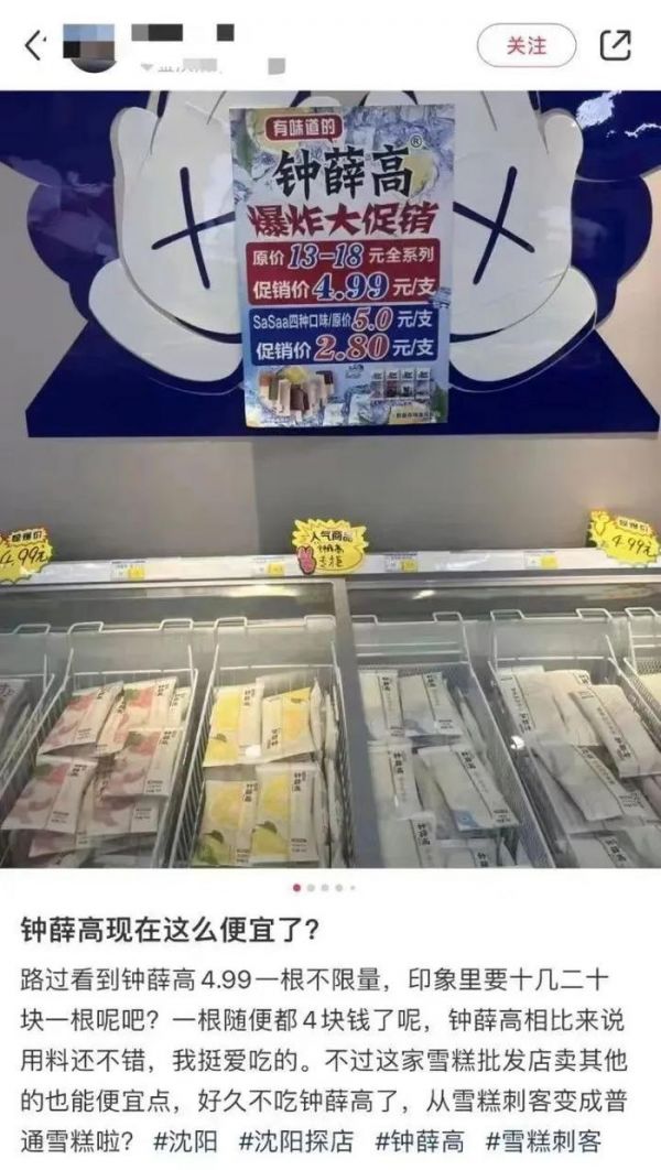 “我以前买的时候是25元一支,刚在商城买的109元10支,还送20支Sa’Saa(雪糕),我是不是赚了?”早在今年7月,就有网友发帖表示,一向以“贵”著称的钟薛高,今年怎么这么便宜?不少网友发现,线下渠道的钟薛高也在“甩卖”。“原价13元至18元不等的全系列雪糕,促销价4.99元一支。‘雪糕刺客’变普通雪糕了?”有网友疑惑道。