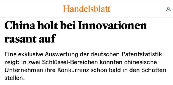 “中国经济凭借创新技术变得越来越成功。”德国《商报》20日称,位于科隆的德国经济研究所(IW)对10年来中国公司在德国注册的专利评估报告表明,中国企业很快就会在两个关键领域超越德国、美国等西方竞争对手。