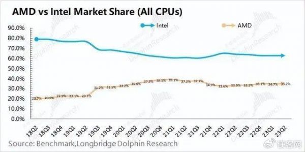 在推出Zen架构以后,曾经濒临危机的AMD由危转安,不仅在消费级市场逐渐赶上英特尔,同时在服务器市场拿下近20%的市场份额。