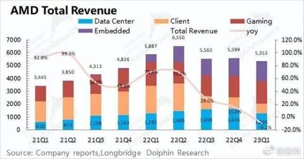数据中心业务都开始出现业绩下滑的风险,游戏跟嵌入式业务更难撑起AMD公司的业绩了。