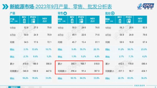 从数量上看,今年前9个月,新能源累计销量比去年同期增加了131万辆,其中纯电比去年同期多卖了53.7万辆,而PHEV比去年同期多卖了77.3万辆(去年是纯电增181.2万辆、PHEV增87.5万辆)。