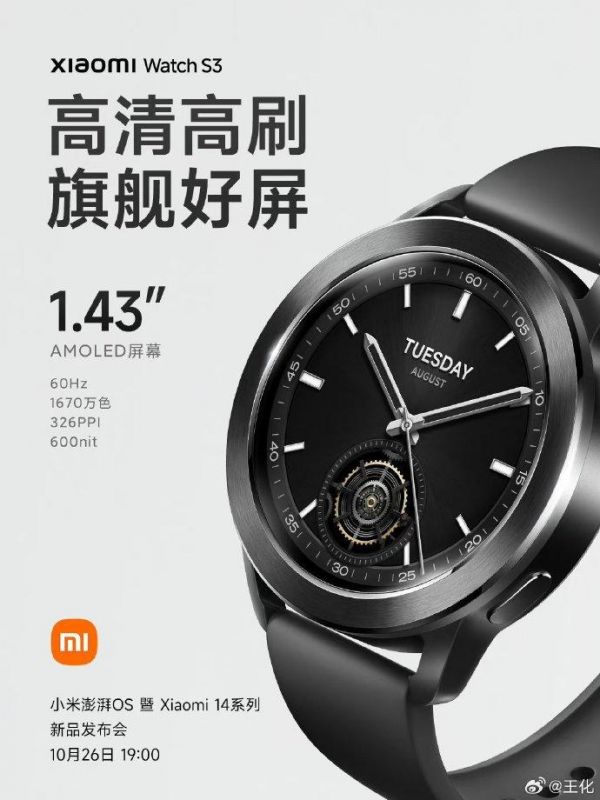 IT之家 10 月 23 日消息,小米澎湃 OS 暨小米 14 系列新品发布会将于 10 月 26 日 19:00 举行,届时小米手表 S3 也在亮相,官方现已发布预热信息。