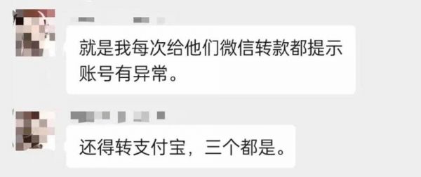 给对方微信转账,显示账号异常