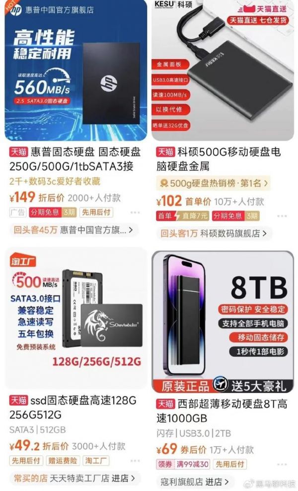 让大家最直观地感受到价格跳水的,就是去年双“11.11”上,各大电商平台打出“骨折价”的内存和固态硬盘。当然,最近这个价格有微微地上调,不知道大家发现没有,可能是为今年双“11.11”做准备。