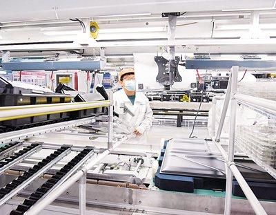 在位于山东省青岛经济技术开发区的海信视像科技股份有限公司黄岛基地,生产线运转繁忙,来自全球的订单源源不断。工人们开足马力生产,满足市场供应。图为2月9日,工人加紧赶制外贸订单。 新华社记者 李紫恒摄