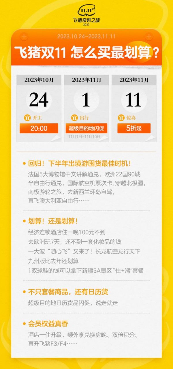 10月24日消息,2023年飞猪双11将于10月24日晚8点正式启动。