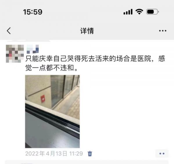 网约车只能停在大路边,她得从公司大楼走过去。这条几十米的路她走过无数遍。此刻却变得格外漫长。第一次,她不得不在中途蹲在地上休息,顺便发了一条朋友圈: