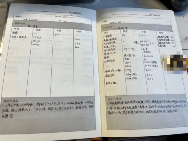 她在这家健身房练了一年。她向我展示了一个本子,里面记载着教练教给她的每一个动作、示意图,以及她的训练强度、次数、疼痛感和心理感受。然后,时间到了2019年,健身房老板卷款逃跑了。就在这时候,苏丹发现,自己的腰从“膨出”变成了“突出”——这意味着,她的腰痛进一步恶化了。