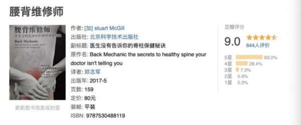 但当我读到斯图亚特·麦吉尔的《腰背维修师》时,我获得了不少信心。在书的简介部分,作者就像那些诱人的广告词一样为我列出了美好生活的图景:“你值得让自己感受一天下来没有疼痛和不适是什么感觉。是时候重新掌控自己的生活了;是时候重新开始,给你的脊柱一次彻底的检修了;是时候找回挺拔轻盈的姿态了!”