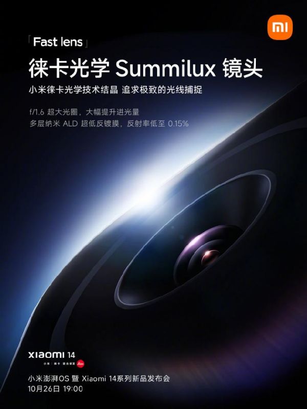 在此前的预热中,小米 14 手机还官宣搭载徕卡光学 Summilux 镜头,官方称其拥有“更大的进光量,更快的快门响应,更卓越的虚化能力,更纯净的夜景表现”。海报显示,该镜头拥有 f / 1.6 超大光圈,大幅提升进光量;采用多层纳米 ALD 超低反镀膜,反射率低至 0.15%。