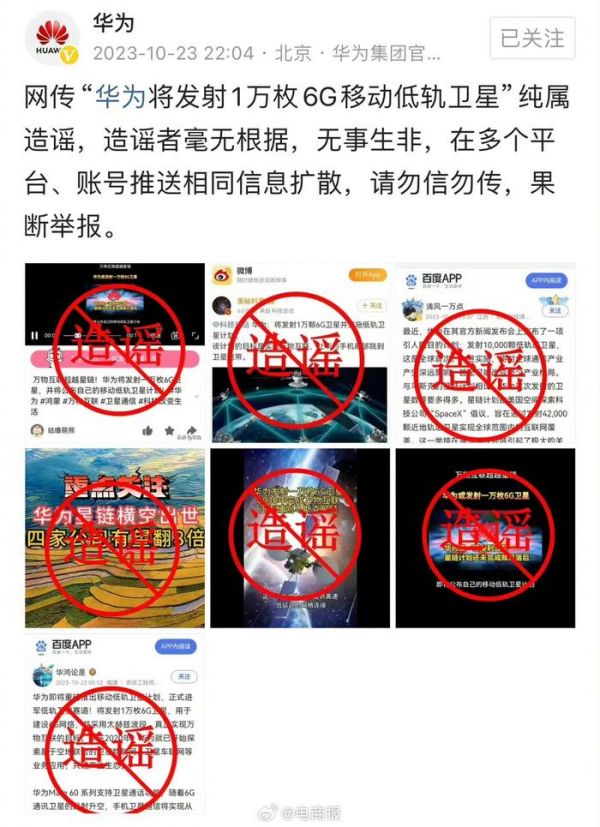 华为辟谣将发射万枚低轨卫星:无事生非……