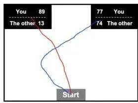 当测试者内心很纠结时,鼠标弯弯曲曲的移动轨迹暴露了内心的冲突。通过观察测试者从显示器底端中间开始移动鼠标至选择其中一个选项的动态过程(如红色或蓝色轨迹所示),在个体无意识的情况下,鼠标移动的弯曲程度、移动速度和角度、反应时间、选择结果等数据揭示了测试者决策背后的心理路径。