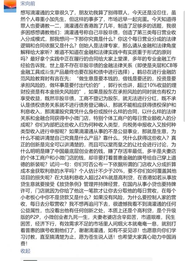 有些则顺道“普法”——滴灌通跟商户签的就是最普通的联营合同,法理上有依据,而且利率也没超过20%。
