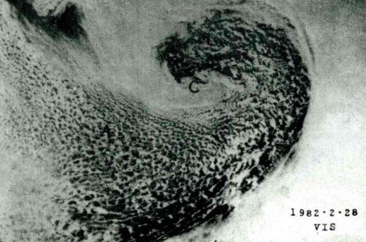 图4可见光云图,a:涡旋云系,b:细胞状云系