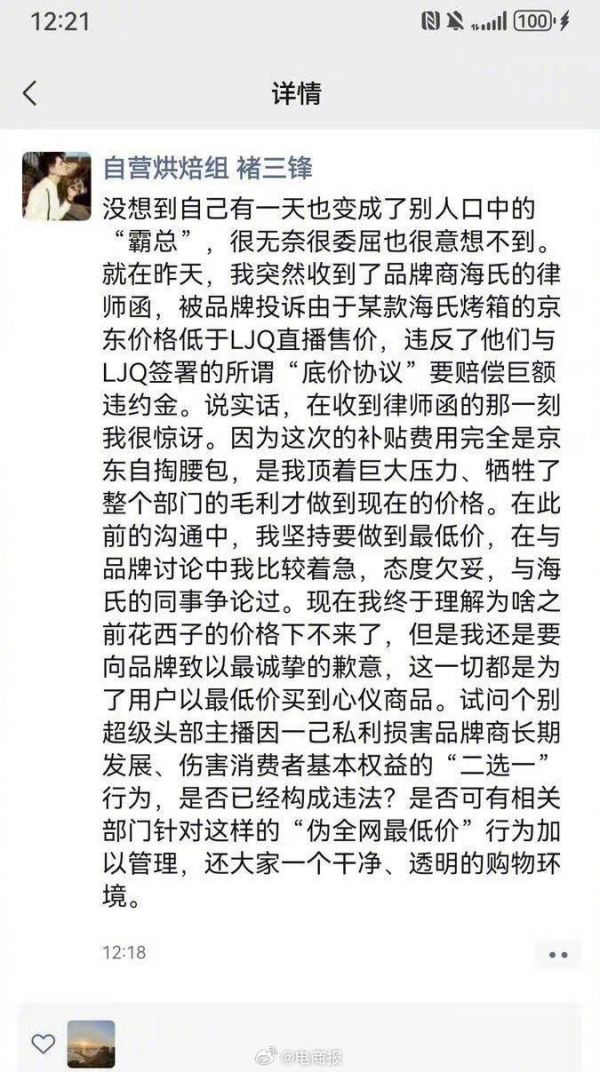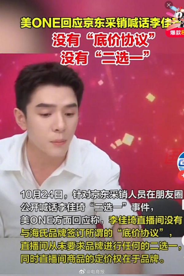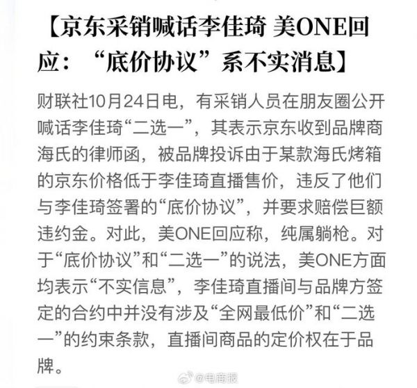 京东采销喊话李佳琦二选一,美ONE回应:不实消息……