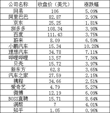 其他热门中概股中,BOSS直聘上涨8.64%,哔哩哔哩上涨7.36%,满帮上涨4.01%,新东方上涨3.65%,百度上涨3.75%,携程上涨2.51%,汽车之家上涨2.15%,知乎上涨0.96%。