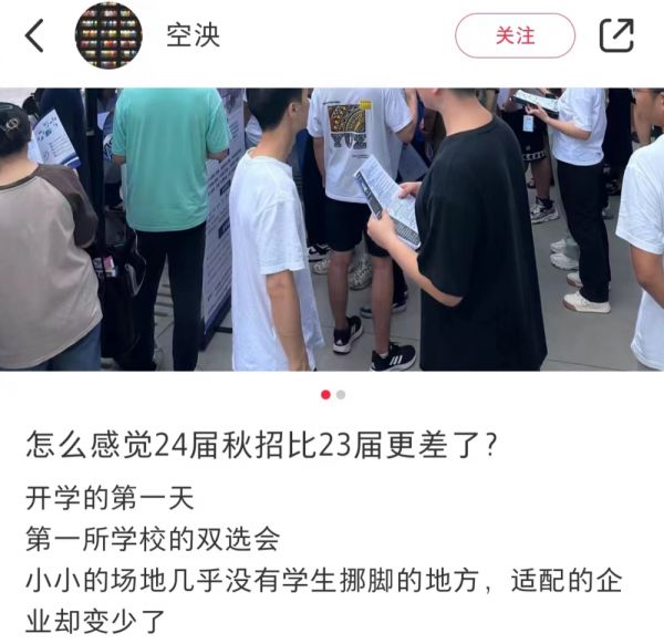 有人体感今年学校双选会的企业数量不如往年,现场僧多粥少,求职学生多、适配企业少。