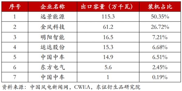 图说:2022 年风电机组制造企业出口(发运)总容量 229 万千瓦,来源:中国风电新闻网、CWEA、东证衍生品研究院