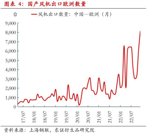 图说:国产风机出口欧洲数量,来源:上海钢联、东证衍生品研究院